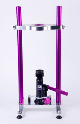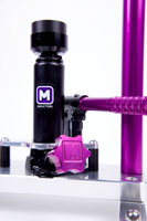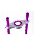 The top plate of the spring compressor has a purple insert in the centre, which locates the spring collar. The insert has an alloy outside and a plastic inside to protect the spring and spring collar. The spring compressor has been designed so you can swap the inserts to suit different size spring collars. We supply the spring compressor with the most popular insert, which covers 80% of shock absorbers, extra inserts can be bought or made to order if needed.