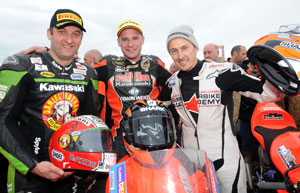 John said: "The Superbike races are the big ones, they are the two events that the fans want to see and the riders want to do well in. I took fifteenth in Superbike race one after a race long battle with Ian Lougher. It was a feather in my cap to get the better of Ian who has won eight times at the North West during a glittering road racing career. Burrows had high hopes of a top six finish in the Supertwins race but it was not to be. He explained: "I got away in the top six and was very confident of staying there but before the end of the first lap my Cookstown/KBM Kawasaki 650 slowed dramatically. I had to pull out of the race and later we found a broken spark plug was the culprit. That's very frustrating." There were mixed fortunes for Burrows in the two Superstock 1000 races. He commented: "In Thursday's wet race the track conditions were treacherous and it was an achievement just to finish. I took the Cookstown/BE Kawasaki 1000 to nineteenth which may not sound tremendous but after the six laps I was only twelve seconds behind Adrian Archibald and John McGuinness. Burrows had a frustrating time in the two Supersport 600 events: "The Moira Club's 600 Honda was found badly wanting for top speed on the 'Triangle' and there's no getting away from that. In race one I tried different gearing which didn't solve the problem and I retired. In race two I took nineteenth which was as good as possible given the speed deficit." Everything may not have gone exactly according to plan but four top twenty finishes for a privateer team at an international event is not to be sneezed at. Burrows and all of the Cookstown/BE Racing team are now looking forward to the Isle of Man TT races which start next weekend. Cookstown/BE Racing would like to express their sincere condolences to the family and friends of Scotland's Mark Buckley who died after crashing in the second Superstock race at the North West. A great road racing competitor, Mark will be sadly missed.Back Top five finishes for Farquhar at North West 200![]() The Superbike race was Ryan's opening race of the day and with a good start, he completed the opening lap in fourth place, riding the bike that he'd only finished building in his workshop the week before! A lap later, race leader Alastair Seeley overshot Church Corner and Ryan was up to third and just 0.4s behind fellow Kawasaki rider Michael Rutter. There was little to choose between the dicing duo and by the end of lap 4, Ryan was running in a superb 2nd although Seeley had regrouped and was now tearing his way through the field. The Suzuki rider seized second on lap 5 and the remainder of the race saw Ryan, Rutter and Cameron Donald dispute the final podium spot with the latter going on to take third as Ryan crossed the line in a solid fifth place. The following Superstock race was even more fraught with never more than a couple of seconds between Ryan, Seeley, James Hillier and John McGuinness at the head of the field. However, Rutter had started from the second wave and it would be he who eventually won the race on corrected time, the other four riders battling for second. Positions changed all the time between Ryan, Seeley and Hillier along both the straights and going into the corners and the result was in doubt right up until the end of the six laps. On the run in to the line along the coast road, Seeley and Hillier took second and third with Ryan in fourth place, just 1.8s separating 2nd to 5th. Ryan's final race was the feature NW200 Superbike event but after making some changes to the ZX-10R after the earlier race, the set-up wasn't quite as good and so Ryan retired from sixth place on the 4th lap. Meanwhile, team-mate Jamie Hamilton put in a strong showing on his circuit debut and was unlucky to only take one finish from his three races as brake fade and an oil leak led to retirements in the NW200 and Superstock races. He did finish in a fine 19th though in the first Superbike race. Speaking at the end of the day, a tired, but pleased, Ryan said; "It's been another good day for me and to be fighting it out for the rostrum positions in every race was very pleasing. To be honest, it was as big a shock to me as anyone else that I was so high up in the Superbike race as the bike hadn't even turned a wheel until Tuesday's practice session! Qualifying went well with it so I didn't take it out in the wet on Thursday and with a good start to the race I was up to 2nd and battling with Michael Rutter before I knew it. It's the best Superbike I've ever ridden and with a bit more time on it, I'll be able to get it dialled in more and really challenge. The only thing that let me down in the race was my personal fitness and that's essentially what allowed some of the boys to get me on the last lap. I've worked so hard getting all the bikes ready, especially for the Supertwins race, that I haven't had time to train but the Supertwins race was my priority this week so I've no regrets." "To be riding with people like Michael, who know their bikes inside out, was very pleasing indeed whilst the Superstock race went equally as well. Sure, it would have been nice to have finished on the podium but I gave it my all and couldn't have ridden any harder. I also think I proved that I could mix it with the short circuit riders like Alastair and James who certainly excel through the slower chicanes and I should be even stronger at the TT, a track that suits me better. All in all, I'm happy with how the day went and it bodes well for the TT. Jamie had a few niggling little issues but for his first North West 200, he gave a very good account of himself and was mixing it with a lot of vastly more experienced riders so the TT's looking good for him too. We're all hoping he gets plenty of mileage in, has some good finishes and enjoys himself." "On behalf of KMR Kawasaki and myself, I'd like to express my sincere condolences to the family and friends of Mark Buckley who sadly lost his life after a crash in Satu