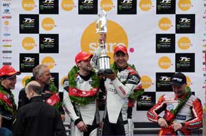 The 12-Lap event got underway in perfect weather and Filip was constantly in the hunt for the race win. Steve Brogan led in the early stages from Joe Burns and Adam Jenkinson but he ran on at the Esses in the second half of the race, dropping him down the order. At the front of the field Jenkinson and Burns were battling it out as Filip joined in. These three were well clear and behind, Victor was challenging Josh Day who was enjoying his best performance so far this season, Danny Johnson and Matteo Baiocco with Hudson Kennaugh a further one second back. Filip was still riding well as the race moved into the closing stages, and on the tenth circuit he put in the second fastest lap of the race to keep the pressure on Jenkinson and Burns. At the flag he was just under a second away in third place with Day a further 5.48 seconds back in an excellent fourth. Victor crossed the line in seventh, just over half a second off fifth place man Danny Johnson with Baiocco in sixth. Victor Cox: ''Seventh wasn't the result I was looking for, but after my crash down Craner Curves at 130+mph the team did a mega job rebuilding the bike to get me out for the race. Massive thanks to the team and everyone that helped get me back on the track. Good to see Filip on the podium. Roll on Knockhill.'' Filip now moves up to third in the championship with Victor just one point behind in fourth. Back Delight for KMR Kawasaki as McWilliams wins NW200 Supertwins race![]() ![]() With tricky, damp conditions all the way around the 8.9-mile circuit, former 250cc Grand Prix winner McWilliams had to call on all his experience to get the better of firstly William Davison and then James Hillier and Hamilton, in a thrilling race that saw the lead change hands on numerous occasions. In only his second appearance at the North West 200, Glengormley's McWilliams went head to head with Davison in the first three laps before the youngster slid off at Black Hill, fortunately without injury, as he attempted to take the lead. However, there was little chance for Jeremy to relax with Hillier and Hamilton breathing down his neck but he was able to successfully keep them at bay on the final lap and hold on for a famous victory, the first Grand Prix winner to have won at the North West 200 since Tom Herron achieved the feat in 1978. His eventual winning margin over Hillier was just 0.8s whilst Hamilton was a similar distance back in third for his first ever NW200 podium. ![]() Hamilton had been forced to retire from the earlier Supersport race but he took an excellent tenth in the 6-lap Superstock race with Brian McCormack taking 14th. Jeremy McWilliams: "I never dreamt in a million years that I'd be standing here today as a North West 200 race winner and it's an amazing feeling to be able to say I've done that. It's as good as anything I've ever achieved in my career but it was an incredibly tough race right from the very word go. Conditions were tricky as it was hard to work out where it was damp and where it was wet whilst William was pushing me really hard. It's a shame he slid off as the battle would have gone all the way to the end but I managed to hold on for the win. It's great for Ryan, Vauxhall and the whole team as without them it wouldn't have been possible for me to win. It's such a great team to ride for, one with a real family atmosphere and I'm over the moon with the victory." ![]() Ryan Farquhar; "It's been another good day for KMR Kawasaki and Vauxhall and when I retired I wasn't sure if we'd still be having days like this. We've put in so much effort and so many hours to get the bikes ready and sometimes you wonder why you do it but today makes it all worthwhile. Four bikes in the top seven is pretty special and I also built Lee Johnston's bike who took fifth and had a hand in James Hillier's, so I'll take a bit of credit there as well!" "Conditions made the race tough for everyone and I do feel sorry for Willy Davison as he was riding brilliantly but thankfully he's ok. For Jeremy to ride for me and the team in the first place was special and so the win today makes it even sweeter. Jamie rode excellently too for his first NW200 podium whilst Michael and James did a great job also so it's a big thank you to everyone connected with the team especially Kawasaki UK, Vauxhall and all the boys who've put the hours in. Last year's 1-2-3 was probably the best day ever for KMR but today is right up there." Back Reeves and Sayle take superb TT win![]() ![]() With ideal conditions all around the Mountain Course, it was Ben and Tom Birchall who grabbed the early initiative, leading at Glen Helen on the opening lap by 1.3s from Tim and Dan and although they extended their lead to five seconds by Ramsey Hairpin, they went out shortly afterwards after clipping the bank at Kate’s Cottage. That gave Tim and Dan a ten-second lead at the end of the lap and on the second circuit, they continued to extend their advantage as they closed in on pre-race favourites Dave Molyneux/Patrick Farrance. Indeed, with Tim’s best ever lap of the Mountain Course, a speed of 114.608mph, they also took over the lead on the road which gave them a 20s advantage over Molyneux/Farrance. With the race now wrapped up, save for mechanical misfortune, Tim and Dan duly came home for a superb victory, their eventual winning margin over Conrad Harrison/Mike Aylott 20.117s, Molyneux/Farrance nudged back to third. Speaking afterwards, a delighted Tim said; "I’m absolutely speechless and completely over the moon. You can’t imagine how much it means to me to win today and as the reigning World Champion, it’s even sweeter. Jock Taylor was my hero when I was growing up so to emulate him is something really special and apart from when my daughter Maisie was born, it’s the best moment ever. On the first lap I was getting boards saying 'P1 +0' and then 'P2 +0' so I knew it was close but when I saw Dave just ahead of me, I couldn't believe it. As soon as I'd caught 