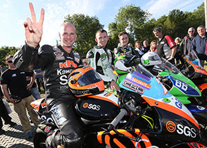For Team ILR riders Vasco van der Valk and Joe Thomas it was another mixed weekend with van der Valk again producing two particularly strong rides. From the very first practice and qualifying session the young Dutch lad, who was paying his first visit to Knockhill, was impressive. Improving by over one second in the two sessions, Vasco finished the qualifying session just 1.39s off the pace to head Row 3 of the grid, with Joe also riding well to finish 12th, just under a second adrift to place him one row back. Vasco was always in the hunt in the first race and was never out of the first six for the first half of the race and mixing it with 3 other riders for sixth place. Joe meanwhile was further down the field and had his hands full in the middle of a large group of riders. The race took its toll on a few riders towards the end and this, combined with some determined riding, saw both riders finish an excellent 8th and 10th respectively. The team were called into emergency action on Sunday morning when van der Valk was knocked off his bike during the morning warm-up, and they worked incredibly hard to get his bike ready for the second race. Vasco re-paid the team for their hard work when he rode another brilliant race to finish a season best 7th, just 0.73s off a top six finish. For Joe however it was one to forget. Caught out in the damp conditions he crashed out on the first lap, breaking a finger and injuring his hand. Thankfully he wasn't seriously hurt and will be ready for the next round at Brands Hatch in two weeks time. Ian Lougher Team ILR owner/manager: ''Another weekend of mixed fortunes for both lads, but both rode well once again. Vasco in particular produced two incredible rides when you consider he had never set eyes on the place before the weekend and thankfully Joe wasn't badly hurt after his Race 2 crash. The whole team worked hard over the weekend, particularly after Vasco was knocked off in warm-up. We now look forward to Brands Hatch in two weeks time. Thanks again for all your support.'' Vasco van der Valk: " A good weekend at Knockhill! I learned lots and Team ILR helped me so much! After a crash in the warm-up, I am so grateful to them for fixing my bike and I got 7th in the race! So 8th and 7th is the best weekend so far! Thanks to the team and my sponsors! Joe Thomas: "So the weekend didn't go so bad, in the first race I had an awesome couple of battles and finished 10th, but in the second race I sadly fell off breaking my finger and injuring my hand, oh well bring on Brands!" Back Satisfying Weekend at Brands Hatch for Team ILR![]() Van der Valk went quickest of the two in qualifying to place him on Row 4 of the grid with Thomas just under a second slower and one row back. Both riders would perform well in the weekend's two races with Vasco's two ninth places only telling half the story, and on another occasion the 15 year old Dutch rider could have found himself with two top six finishes. He was very much part of a seven rider group that battled for virtually the entire first race for 5th place, and only lost out when among back markers in the closing stages. Nevertheless he learned a lot, finishing as he did just behind Ed Rendell, one of the most experienced and quickest riders in the class. And it was a similar story in Race 2 with Vasco always in the mix in a group of five riders challenging for the higher placings. Joe also rode well at Brands Hatch. Comfortable in 14th in Race 1, he then came under a lot of pressure in the closing stages but with a lot of determination he held on to fend off his rivals. Buoyed by this, Thomas improved his lap times considerably in the second race to ride to a great 10th place finish behind his team-mate in ninth. Vasco has hit a rich vein of mid-season form with the action now moving to Thruxton in two weeks time, and it's a circuit which should suit him. With renewed confidence, Joe will also be looking to give a good account of himself at the fast flowing Hampshire venue. Ian Lougher Team ILR owner/manager: ''It was a satisfying weekend for the team with both riders getting into the top ten once again. In Saturday's race it looked at one point that Vasco might get 5th as he was involved in a real dog-fight with seven other riders. He was at it again on Sunday in Race 2 gaining another ninth. Joe struggled a bit on Saturday with confidence but went two seconds a lap faster on Sunday getting a great 10th. As always I'd like to say a big thank-you to all our sponsors, and also the hard work put in by the team members this weekend as Brands is always logistically hard graft. So a big thank-you also to Matt, Jacko, Richard, Iwan, Anita, Andrea and Asa." Vasco van der Valk: "And the weekend is over, both races 9th with nice battles and improvements all the time! Also my sponsor Amex Logistics BV and Gertjan came down to watch, thanks a lot for supporting me! Hope we can keep up this pace at Thruxton. Thanks to the team and all the sponsors!" Joe Thomas: "I am happy with the weekend. I had a good chat with my mechanic Jacko and I am feeling good about Thruxton. I am more confident in myself and wish to thank all my sponsors and all the team!" Back Double success at Armoy for Farquhar and SGS International/KMR Kawasaki![]() With conditions around the 3-mile circuit perfect all day, Ryan opened his account for the day with a solid sixth on his Kawasaki ZX-10R in the 7-lap Superbike race, despite not feeling over comfortable with the set-up of the machine. It was a different story in the Supertwins race though where, after taking pole position, he took a near two-second win over Derek McGee and also claimed a new lap record of 98.106mph. Team-mate, and newcomer to the circuit, Darren James had a good ride into tenth but there was disappointment for former Grand Prix winner Jeremy McWilliams who jumped the start and pulled into retire as a result of the subsequent penalty. Meanwhile, Adam McLean made his debut for the team, cont
