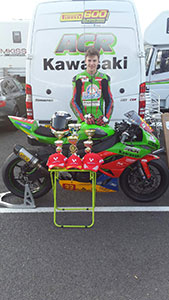 Aaron usually rides in the National Superstock 600 series that runs as a support class to the British Superbike Championship and his class is not on the programme for the round at Assen this weekend. This means that Aaron would not have a race for four weeks and because of the need for continuity he decided to enter the races at Cadwell. He claimed three third places and a second in the 600 class and went on to record two wins and a third place in the Allcomers Open class races. In the final 600 race the 19 year old set his fastest ever lap around the course with a 1m.32.22s which smashed his personal best time by a massive 1.35s. Aaron was delighted with his results and said: "it was a mega weekend at Cadwell Park Derby Phoenix meeting, I had some awesome races and came home with lots of silverware for four third, one second and two first places!! Also I smashed my personal best time by 1.3 seconds as I managed a 1:32.22 which I'm over the moon with as would have put me 12th on the grid for BSB weekend! It was the wrong weekend to do it I know but I'll take it!!" Back Successful Scarborough meeting for Lintin and RC Express Racing