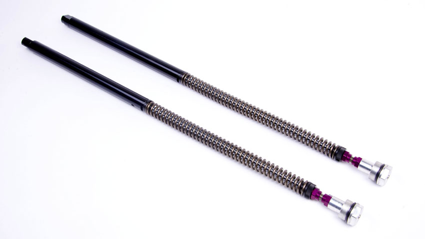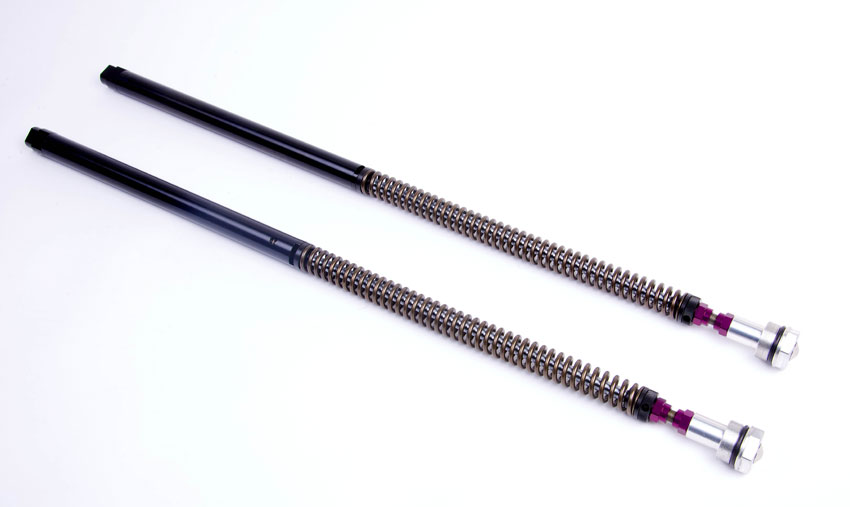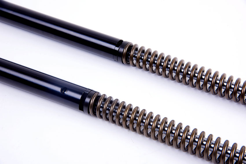 The SD20 fork cartridges have springs in both legs. The springs are manufactured to our design from Silicone Chrome. The spring rate is chosen to suit the weight of the bike and also your rider weight.