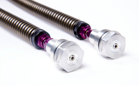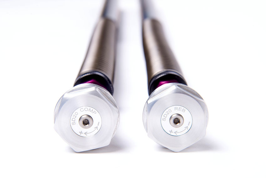 The damper rods on the SD20 cartridges are hard chromed and polished for a hard smooth finish. This improves the low speed action of the cartridge, improving the mid corner feel and making the front forks more compliant.